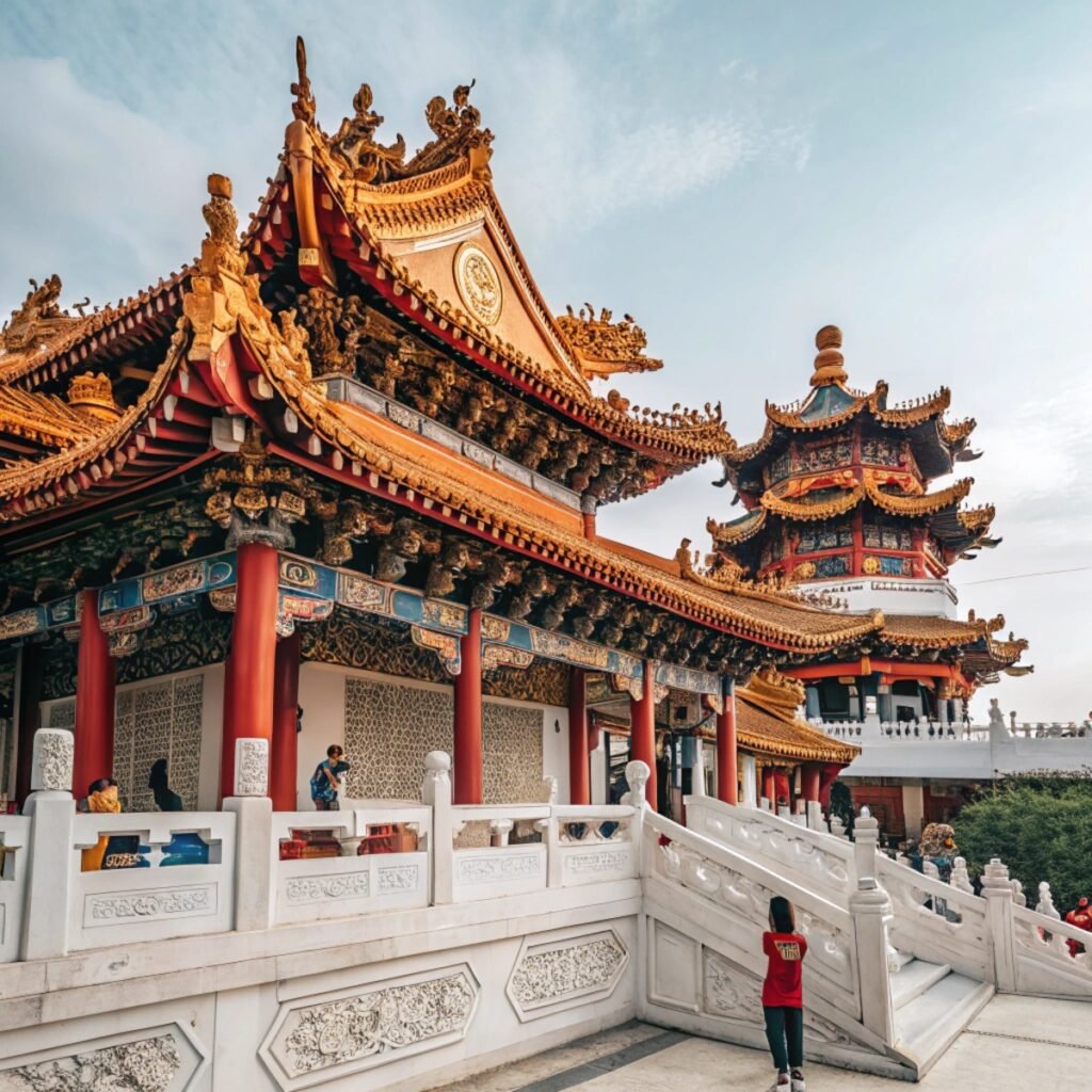 The atmosphere is electric, with families strolling through the illuminated temple grounds, kids carrying colorful lanterns, and cultural performances happening throughout the evening. The temple’s dragon-inspired architecture looks absolutely stunning when lit up for the festival.