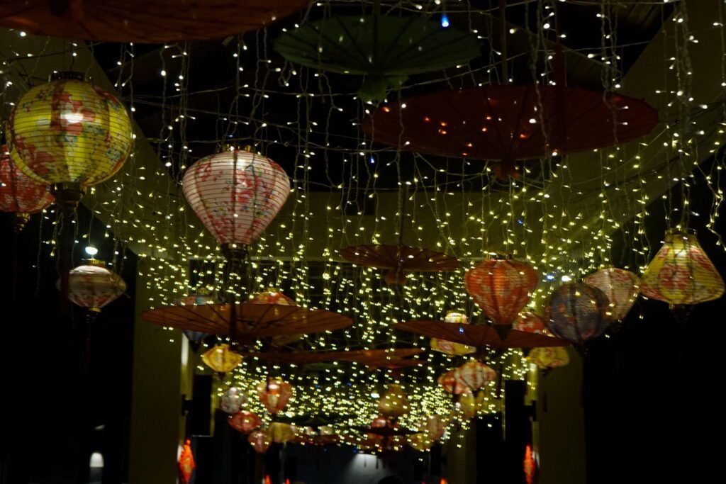 - Decorated with lanterns and festive displays